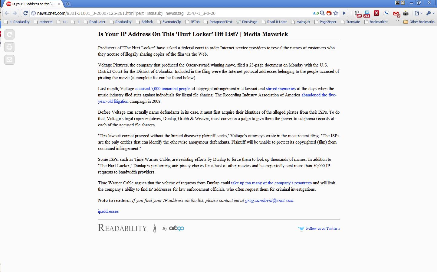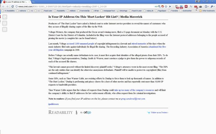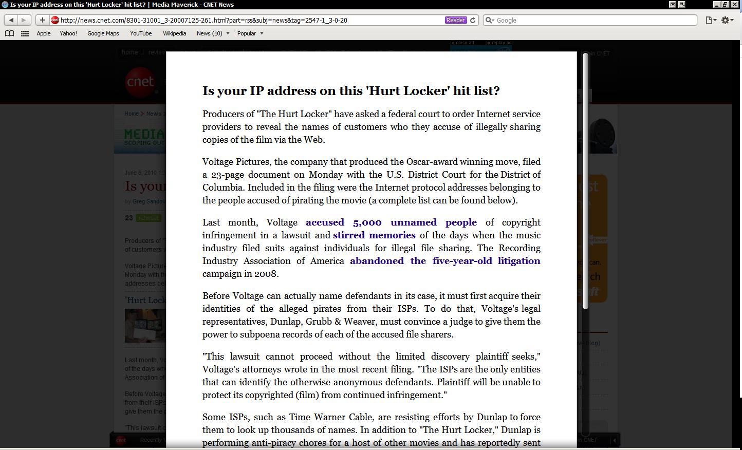 CNet in Safari 5 Reader